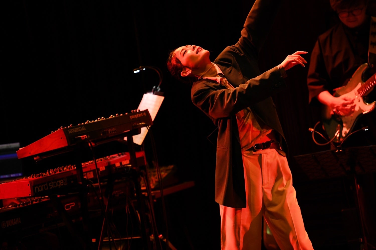 バンド演奏のインタールードの後は、ゲストシンガーkiki vivi lilyが登場し、バンド+ダンス+歌という新たなトライアングルがステージに浮かび上がる。歌に対するダンスと言うと、バックダンサー的な見え方が想像できるが、Miyuの場合は歌と対等、あるいは前に出るフロントダンサーといった存在感だ。