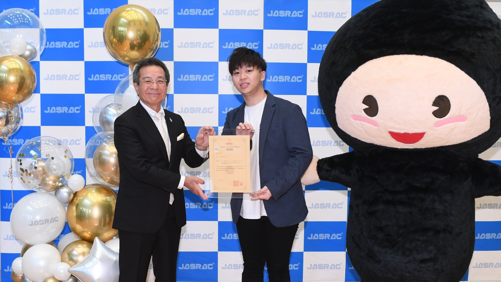 弦哲也会長は「JASRACに多くの作家が集まることで、より音楽の発展につながる。近藤さんをはじめ、若い作家の皆さんに期待したい」とコメントしたうえで、JASRAC委託者の証しである信託証書を近藤さんに手渡しました。
