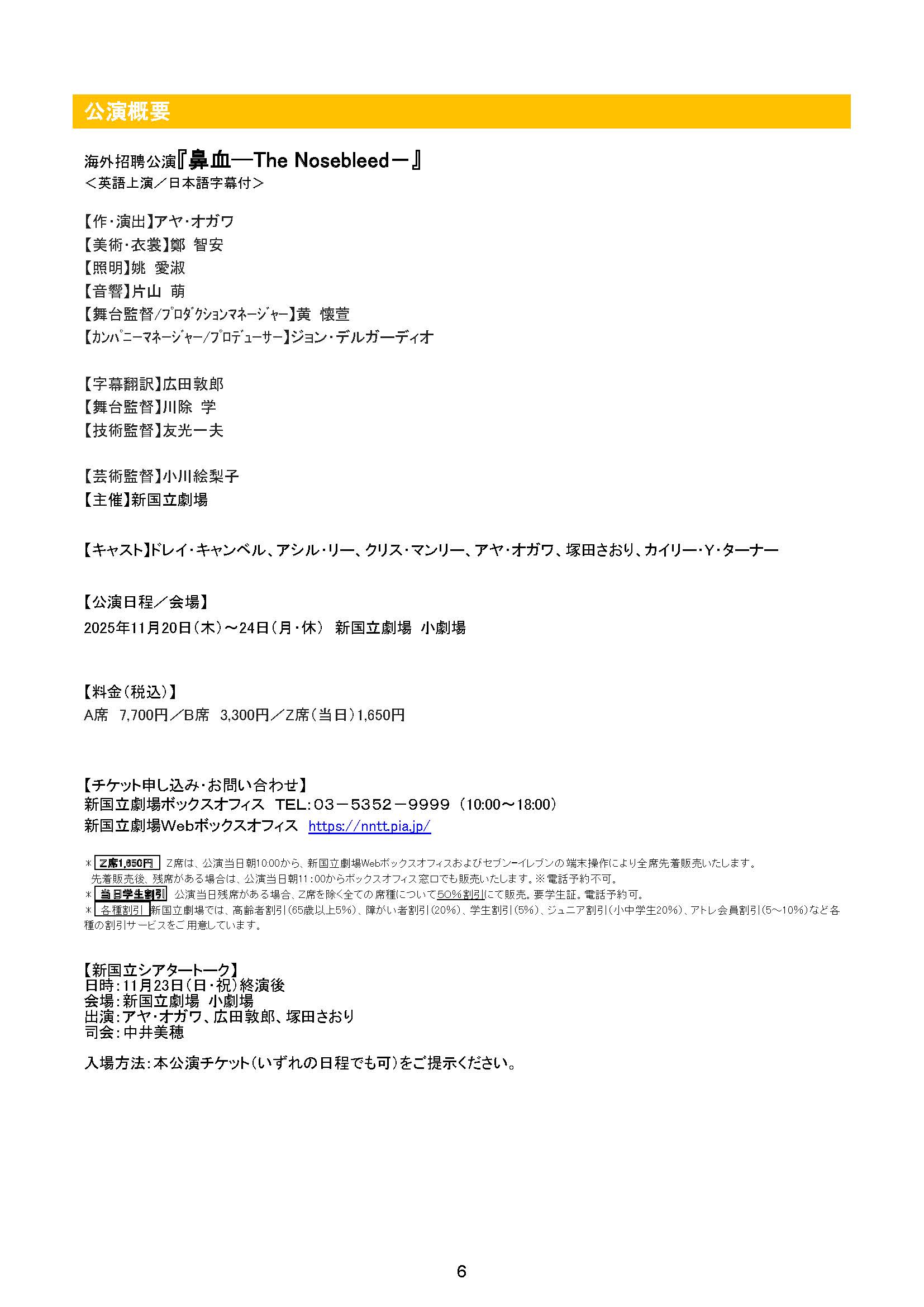 【 新国立劇場 】2025 / 2026シーズン 海外招聘公演『 鼻血 ─ The Nosebleed ─ 』